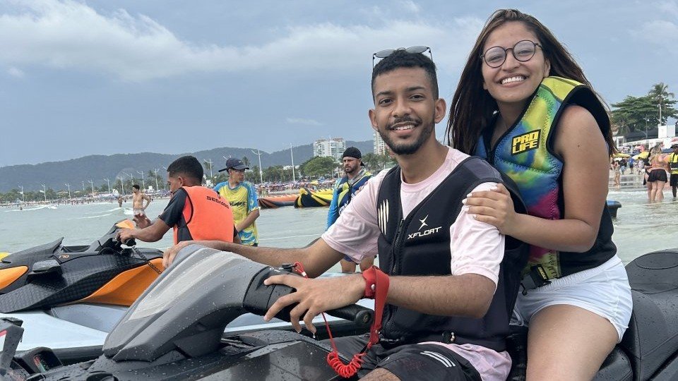 Nos conhecemos em um contexto onde a fé, a amizade e os planos de Deus se encontraram. O que começou com conversas simples, orações compartilhadas e muitos risos, foi crescendo até se tornar amor — um amor tranquilo, cheio de propósito e companheirismo.